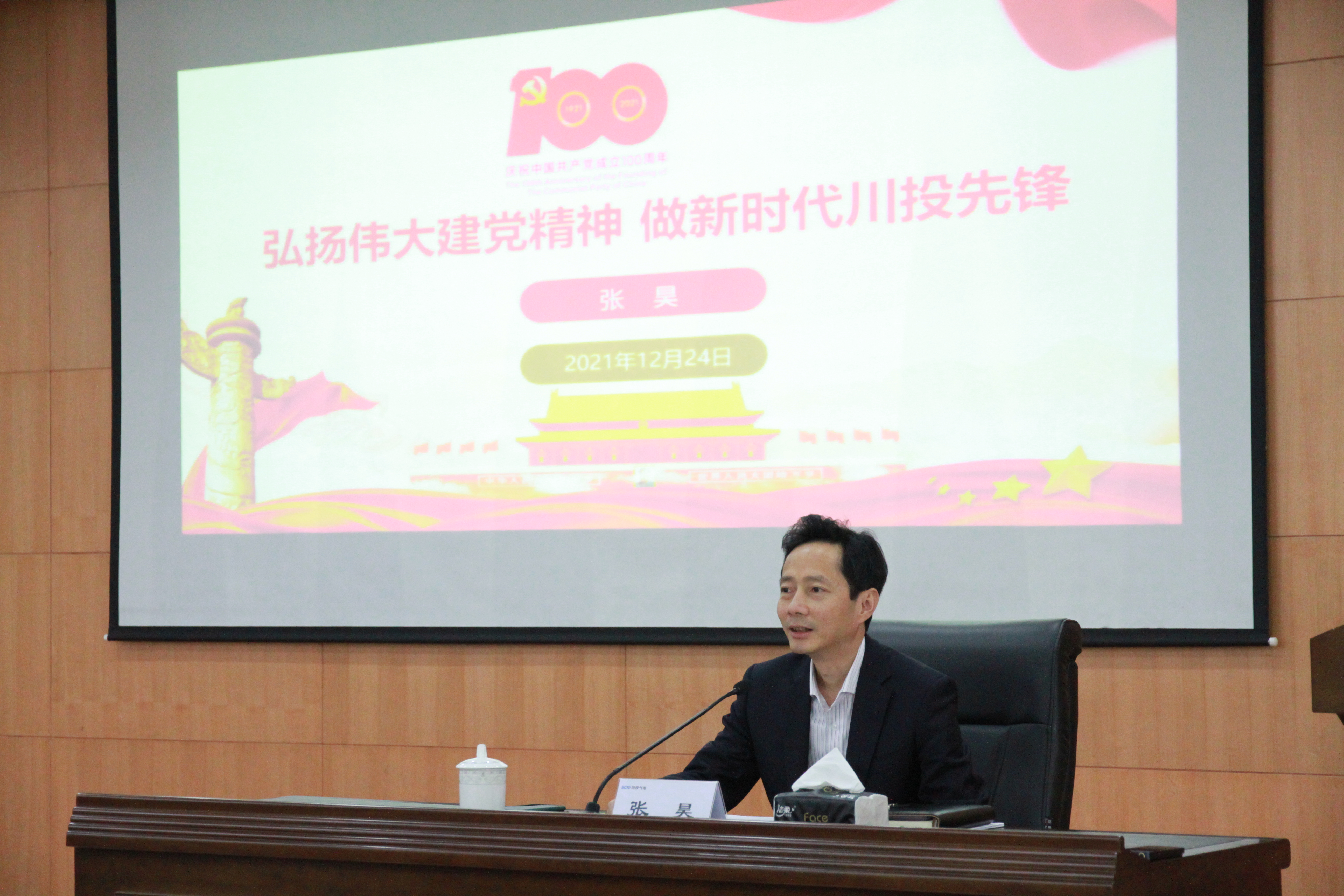 张昊以《弘扬伟大建党精神 做新时代川投先锋》为题,对习近平总书记在中国共产党成立100周年上的重要讲话精神和党的十九届六中全会精神进行了解读宣贯,结合川投气电情况对保电保供、安全生产和经营发展等方面提出了具体要求。
