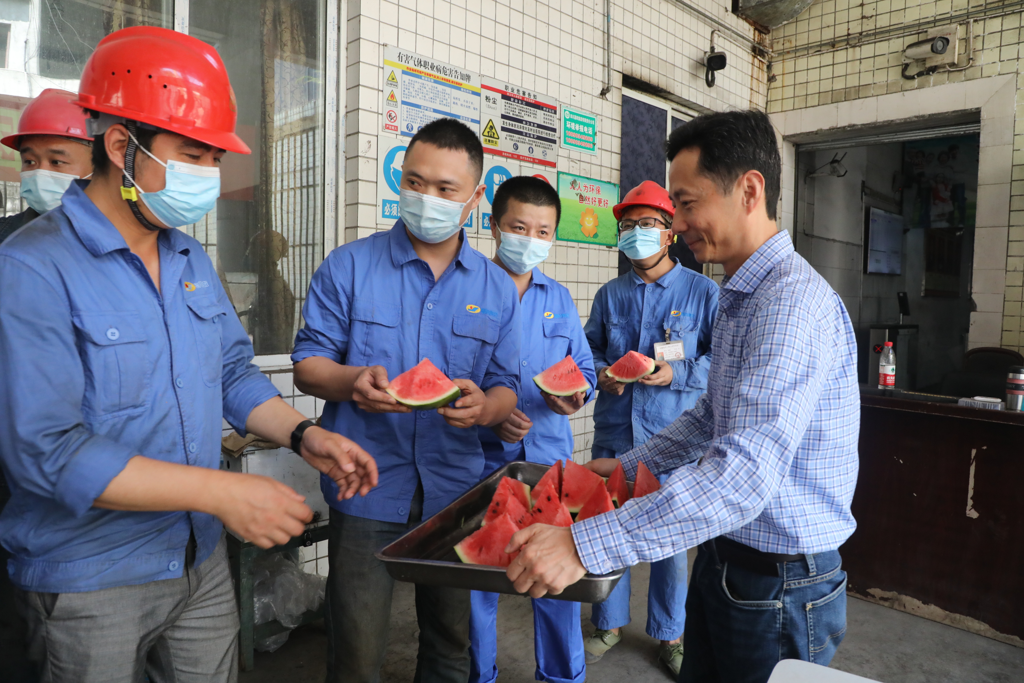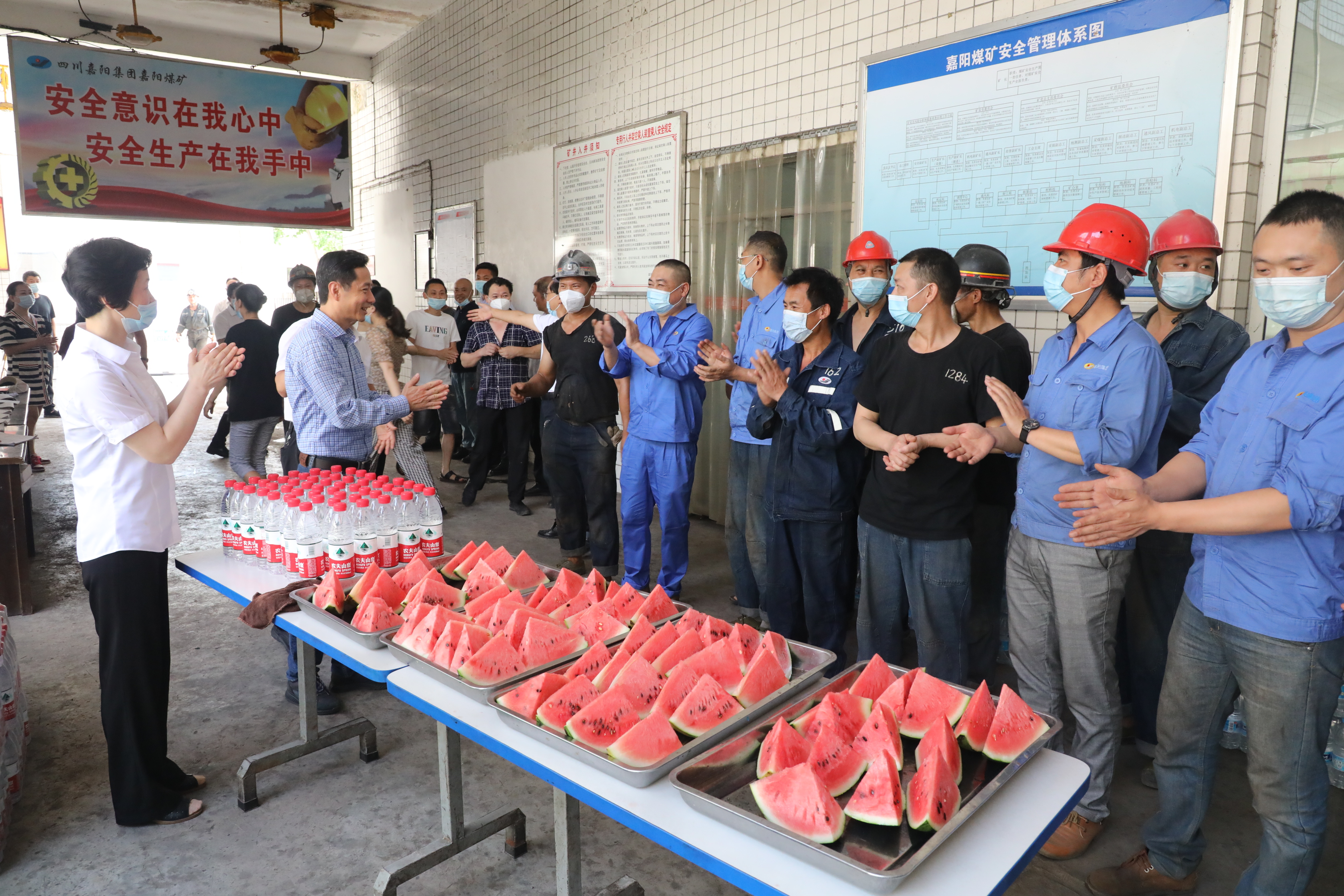 6月7日,集团公司副总经理张昊率队到嘉阳看望慰问一线高温岗位职工,为他们送上清凉和关怀。