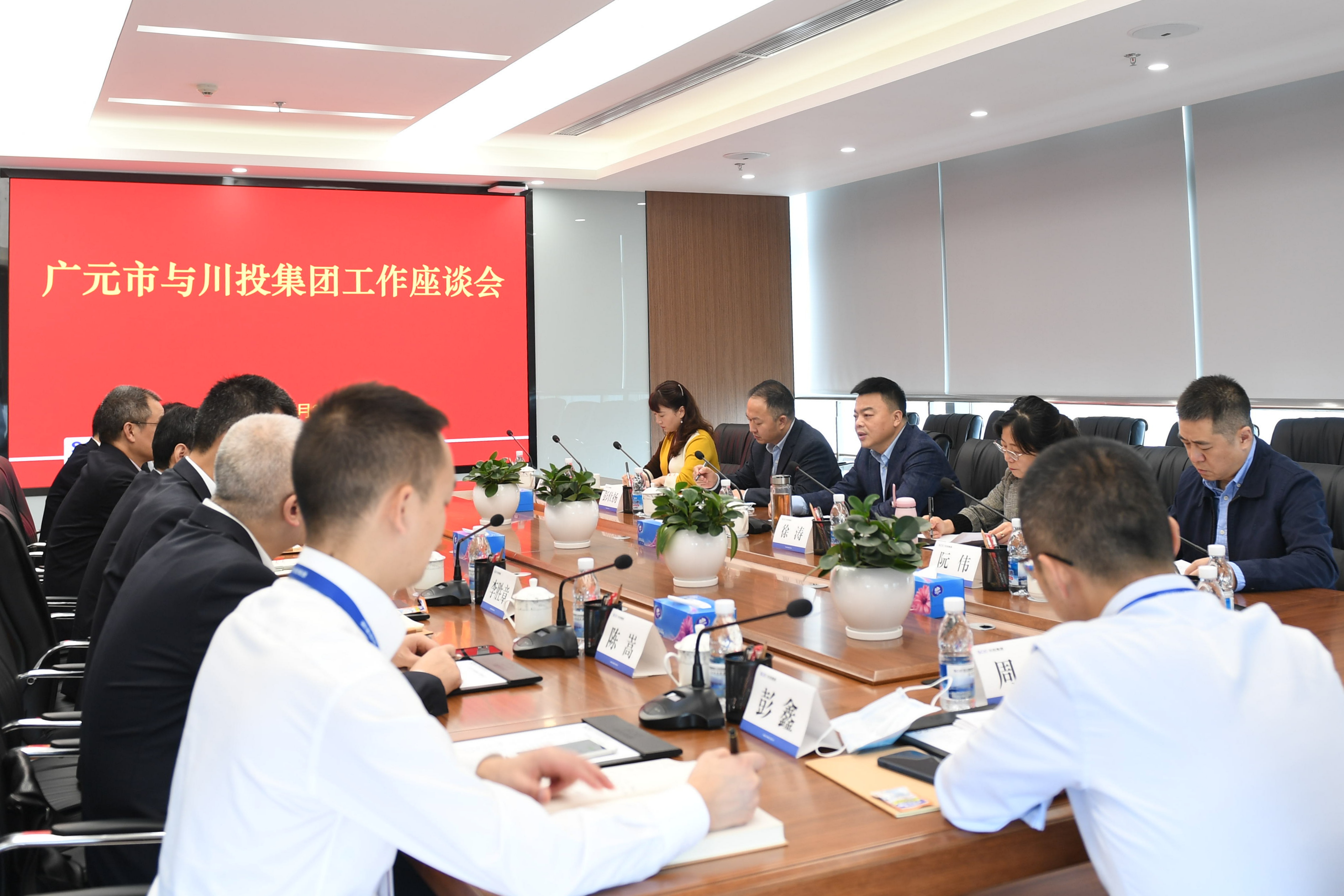 广元市政府副秘书长、驻成都办事处主任、市经合局成都分局局长徐涛,市发展改革委的主要负责同志;集团公司总经理助理、战略投资部部长田传平,总经理助理李胜章,川投新能源公司党支部书记、董事长张鹏举,川南发电党委副书记、总经理陈嵩,战略投资部相关负责同志参加座谈交流。