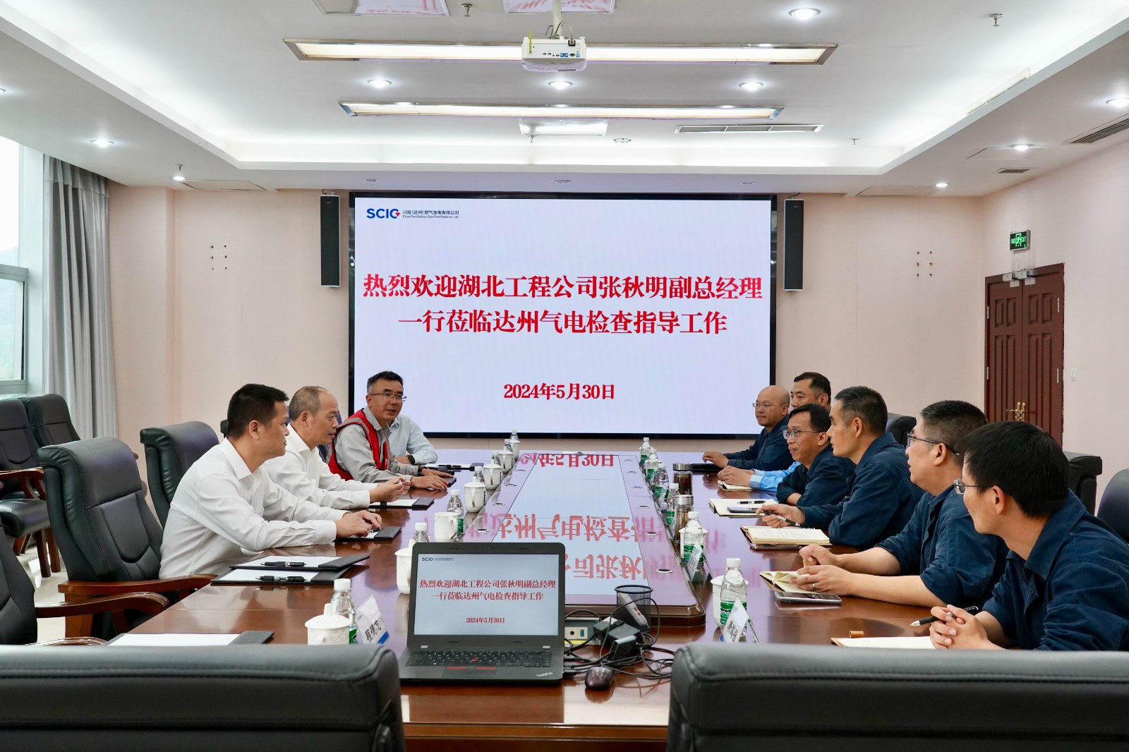 近日,中国电建集团湖北工程有限公司副总经理张秋明一行到达州气电二期工程建设现场开展汛前安全专项检查。达州气电党总支书记、总经理蔡宏,党总支委员、副总经理、二期工程负责人管立陪同检查。