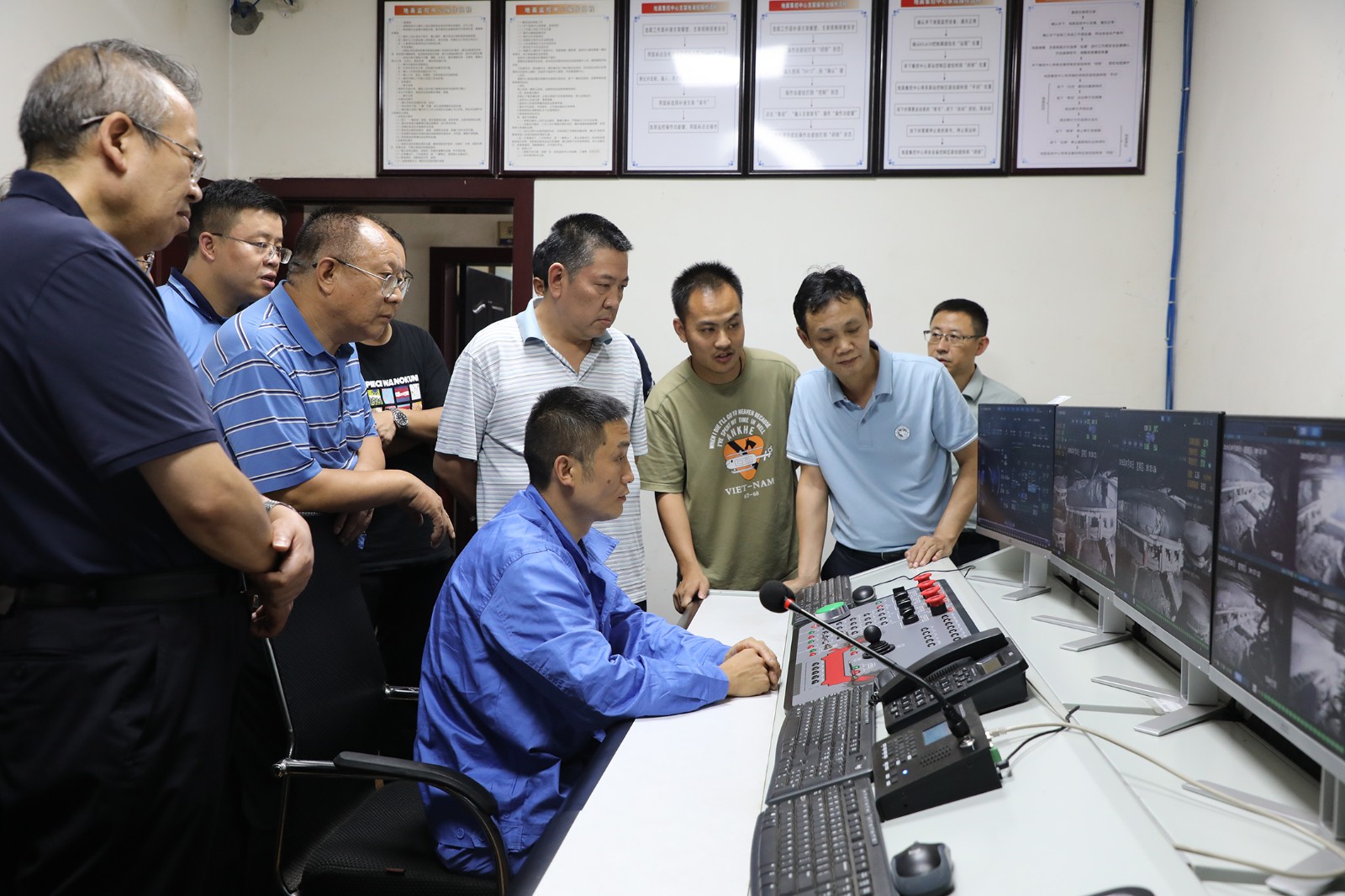 检查组一行实地察看了嘉阳煤矿采煤二队智能化操作室、调度中心、安培中心,详细了解了薄煤层智能化综采生产流程、平台远程控制操作、透明矿山和“智改数转”建设情况,检查组成员与嘉阳煤矿相关专业负责人对接,系统检查了治本攻坚三年行动、八项硬措施落实、执法监管监察、隐患排查治理及风险分析与台账管理、隐患整改、雨季“三防”及防治水等软件资料。