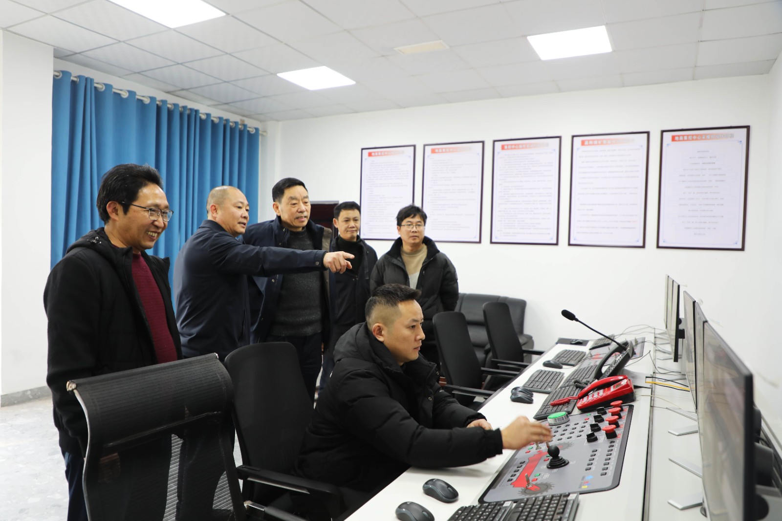 在嘉阳煤矿采一队地面控制中心,邓凯通过线上远程作业,实时察看井下生产情况,详细询问了解节日期间工作安排,强调一定要高度重视安全生产和稳定工作,扎实开展困难帮扶送温暖活动。同时,要充分利用春节放假时间做好设备维护检修,确保节后开班安全顺利。他讲到:“春节即将来临,我代表集团来看望大家,预祝大家春节愉快,心想事成,万事如意,祝嘉阳在新的一年里日子过得红红火火。”