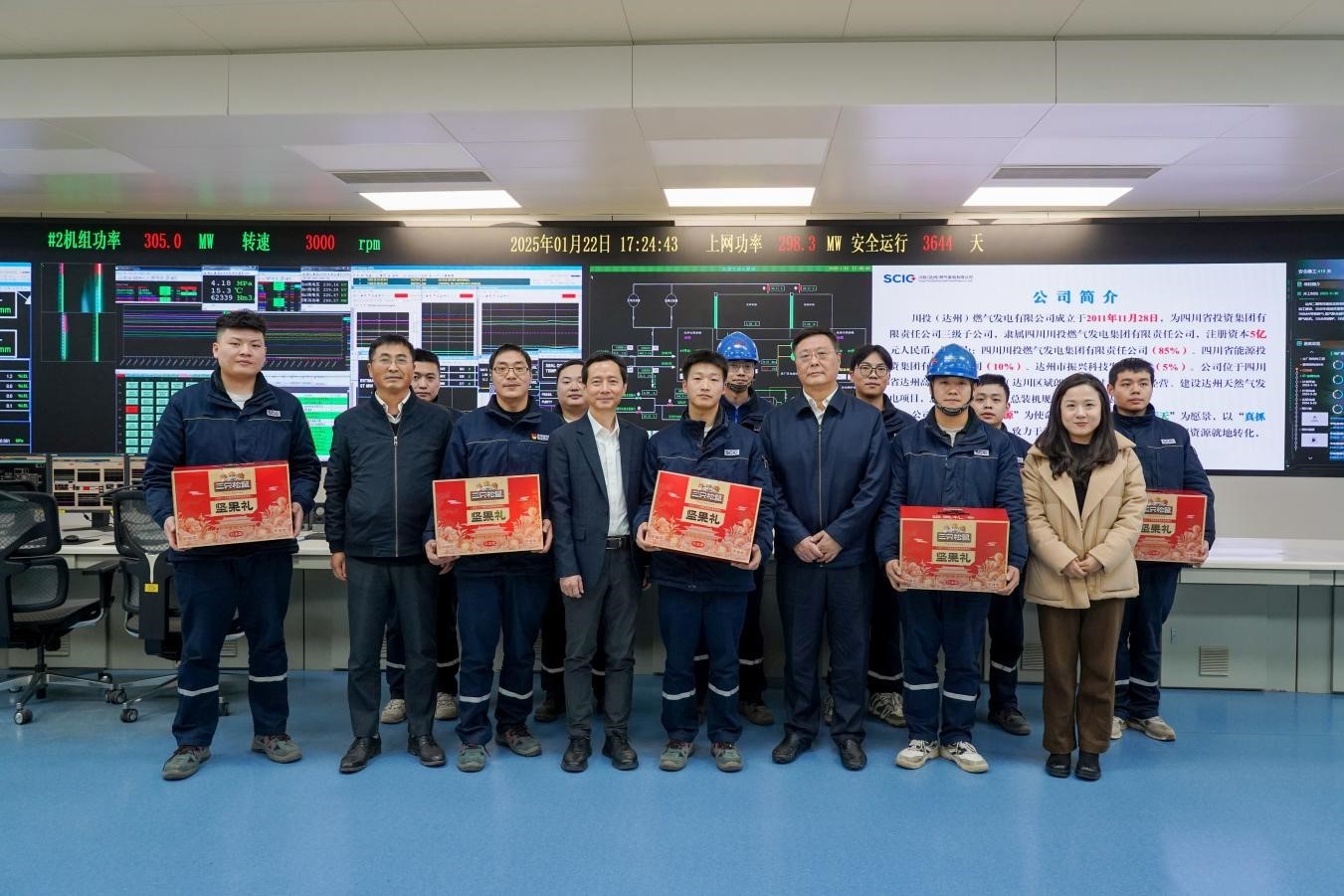 在达州气电一期集控室,李文志一行详细了解春节期间电力保供及安全生产措施落实情况。李文志对达州气电2024年取得的成绩给予肯定。他表示,达州气电始终牢记职责使命,连续安全运行十周年,累计发电188亿千瓦时,有力履行了顶峰兜底电力保供主体责任,彰显了川投人的坚韧与担当。
