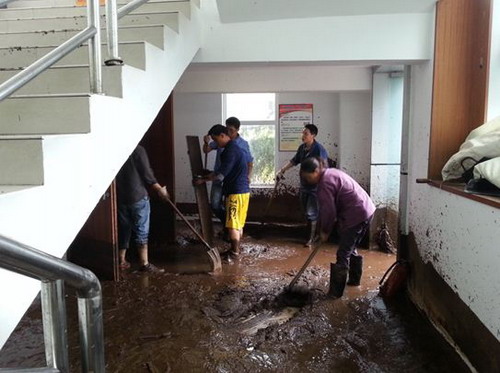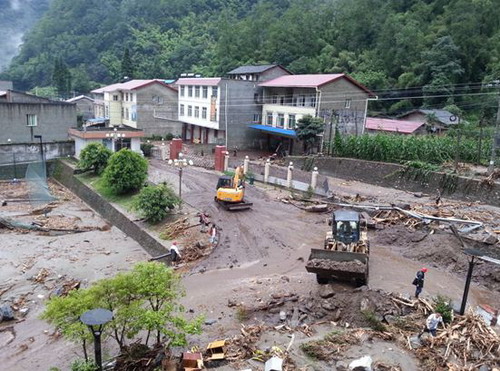 7月10日早上9点,总经理张昊在成都远控中心紧急组织召开“7.09山洪泥石流灾害抗洪抢险”紧急会议,通报了现场受灾情况,研究决定以“保生活恢复”为主线开展抢险救援工作。在现场工作的基础上,成立了供电、供水恢复小组和交通、后勤保障小组分头实施抗洪抢险,安排了任务分工之后即带领副总经理唐剑虹、卢建奎以及一批连夜组织的救援物资、食品、药品赶赴现场。
