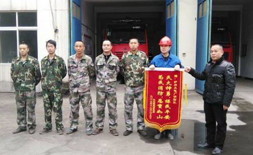 川南发电公司消防队自2007年成立以来,在做好本公司内消防工作的同时,积极协助地方做好消防工作,确保一方平安。9年来,共接外部社会火警数十次,均为江北镇周边民居村舍。赠旗仪式上,江北镇领导的一句“只要一发生火警,川南发电公司的消防队总是在第一时间赶到”道出了川南发电公司消防队为保当地村民防消安全、构建和谐村企所做的努力。(吴健)