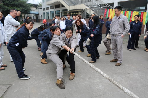 3月8日,公司工会女工委在职工食堂前举行了“庆三八.展风采”第十届“同心杯”拔河比赛,来自生产一线、辅助单位以及机关处室的12个分工会组成10个代表队近150人参加了比赛。赛前,公司工会副主席、女工委主任李宏转达了公司党委书记、总经理唐华应与党委副书记、工会主席余华伟对公司全体女职工的节日问候与良好祝愿,宣传了公司面临的生产经营形势、控亏减亏与改革分流任务以及职代会的工作要求,号召全体女职工认清形势、明确任务,积极转变思想观念,充分发扬“自尊、自信、自立、自强”的“四自”精神,认真落实好“四学一创”活动要求,爱岗敬业、无私奉献,立足本职争创佳绩,用行动彰显“半边天”的作用。拔河比赛本着“友谊第一、重在参与”的原则,采用分组淘汰和循环赛相结合形式进行。各女工代表队都卯足了劲,摆出最强的比赛阵容,齐心协力,奋勇拼搏。未参赛的员工自发组成啦啦队为队员呐喊助威,加油声此起彼伏,经过激烈的比拼,最后,新银江一分厂、储运公司、后勤处女职工代表队分别获得的冠、亚、季军的好成绩。随后,又组织现场女职工进行了以职代会精神和公司持续推进改革、降本减亏、转型发展等为主要内容的知识竞答与谜语竞猜活动。