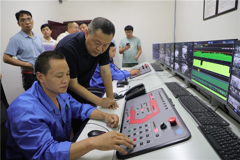 王峰一行还前往嘉阳煤矿采煤二队,实地参观了嘉阳煤矿智能化综采无人工作面地面远程操控平台,兴致勃勃地观看了平台现场演示,对嘉阳高科技新技术的运用连连称赞。