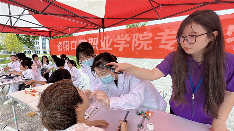 9月16-17日,资阳口腔职业学院迎来2023级新同学。迎新现场,各部系联合打造专业特色体验与展示区,由专业老师指导,学生实操,为新生和家长提供口腔义诊、推拿、艾灸、拔罐、测血压等服务。