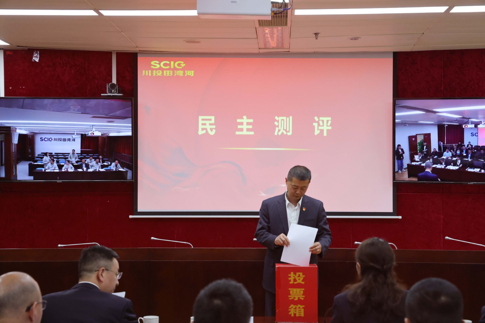 会上,李红代表公司领导班子述职并就2023年度干部选拔任用工作作报告,其他班子成员依次进行个人述职,从政治素质、党建工作、推动高质量发展、巡视巡察整改及以案促改、作风建设、合规管理等方面认真总结,谈成绩、说亮点、讲经验,查不足、找差距、挖根源,并结合自身分管业务,列出下步工作计划及举措。全体参评人员认真聆听,并以高度负责的态度,客观公正、实事求是地对领导班子及成员、干部选拔任用工作进行民主测评。