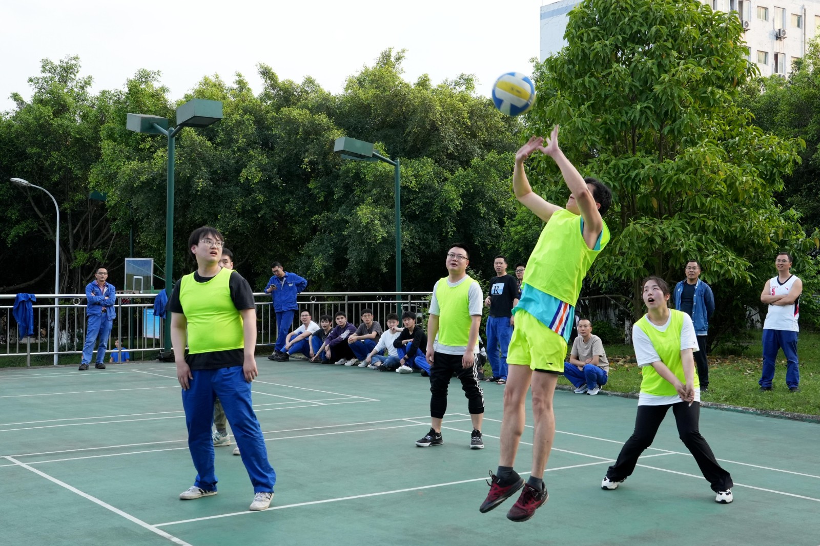 为确保比赛顺利进行,赛前裁判员对赛程安排和比赛规则进行了详细说明,着重强调了比赛安全注意事项。随着裁判员一声哨响,比赛正式拉开序幕。球场上,球员们时而强力扣杀、时而机智轻吊、时而力挽狂澜顽强救球,赛况紧张激烈、精彩纷呈,观众们的目光被球员们的精妙传球和默契配合紧紧吸引,掌声、欢呼声、呐喊声此起彼伏。队员们在奋力竞技的同时,也充分感受到了体育竞技独有的魅力和运动带来的乐趣,加深了彼此间的友谊和团队凝聚力。