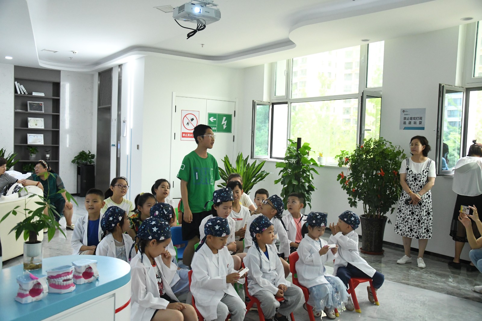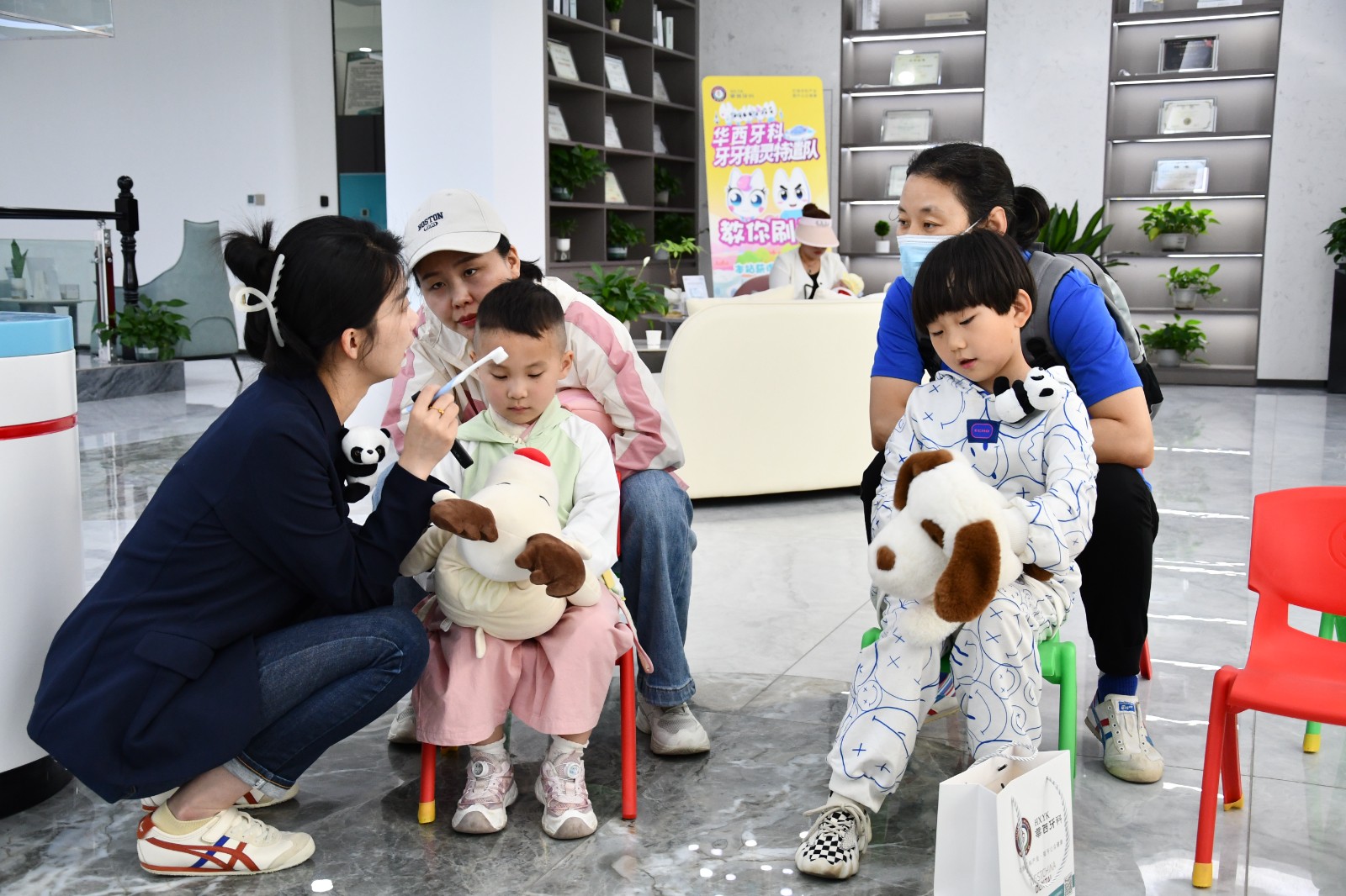 5月18日至19日,兰州华西牙科医院分批次邀请60余位小朋友到院参加“精灵特遣队活动”。活动中,医生以生动易懂的形式向小朋友宣教爱牙护牙相关知识,并为每一位小朋友进行口腔检查。随后,每一位小朋友化身为小小牙医,为自己的父母进行口腔“检查”。