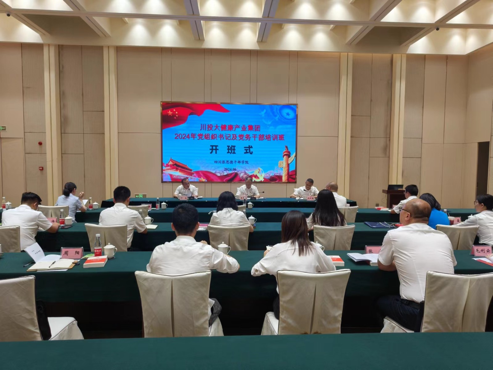 为坚持和加强党对国有企业的全面领导,进一步提升基层党组织书记及党务干部队伍工作能力水平,推动党建经营深度融合,推动企业高质量发展,6月26日下午川投大健康产业集团2024年党组织书记及党务干部培训班在四川张思德干部学院开班。川投大健康产业集团党委书记、董事长、总经理鲁洪斌出席开班式并做开班讲话,党委副书记、职工董事、工会主席王少甫主持开班式,仪陇宗旨教育研究中心副主任、四川张思德干部学院教务部主任、工会主席何东致欢迎辞并为培训班授班旗。