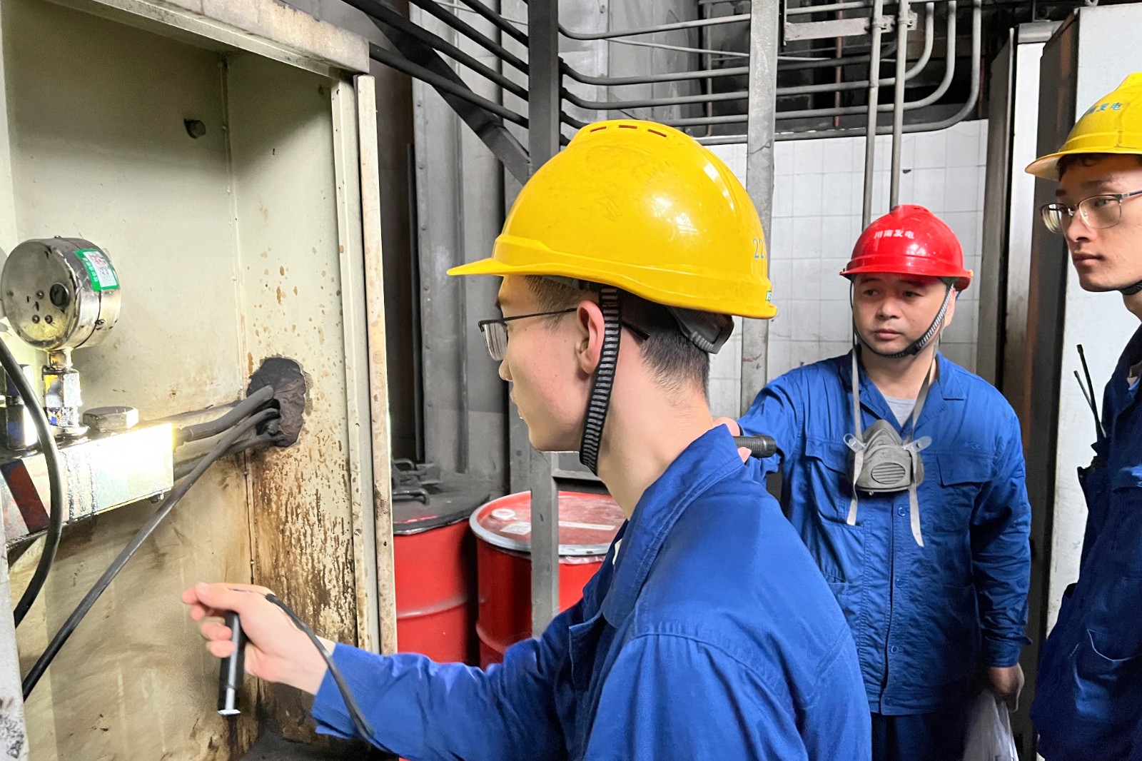 近年来,公司人员变动较快,目前一线巡检人员多为新入职人员,现场工作经验不足。公司针对该情况大力开展现场实操技能培训,手把手以老带新促进新人员快速成长。近期,针对磨煤机喷油嘴易堵塞且发现不及时将影响磨煤机安全运行进而影响机组接带负荷能力的情况,发电部锅炉专责利用休息时间轮流给各班组巡检员详细阐述了大齿轮喷油的工作周期、堵塞时的判断方法,并通过和其它磨煤机大齿喷油情况进行对比等方式,加深了巡检人员对喷油系统的认识,提升了日常巡检维护质效。