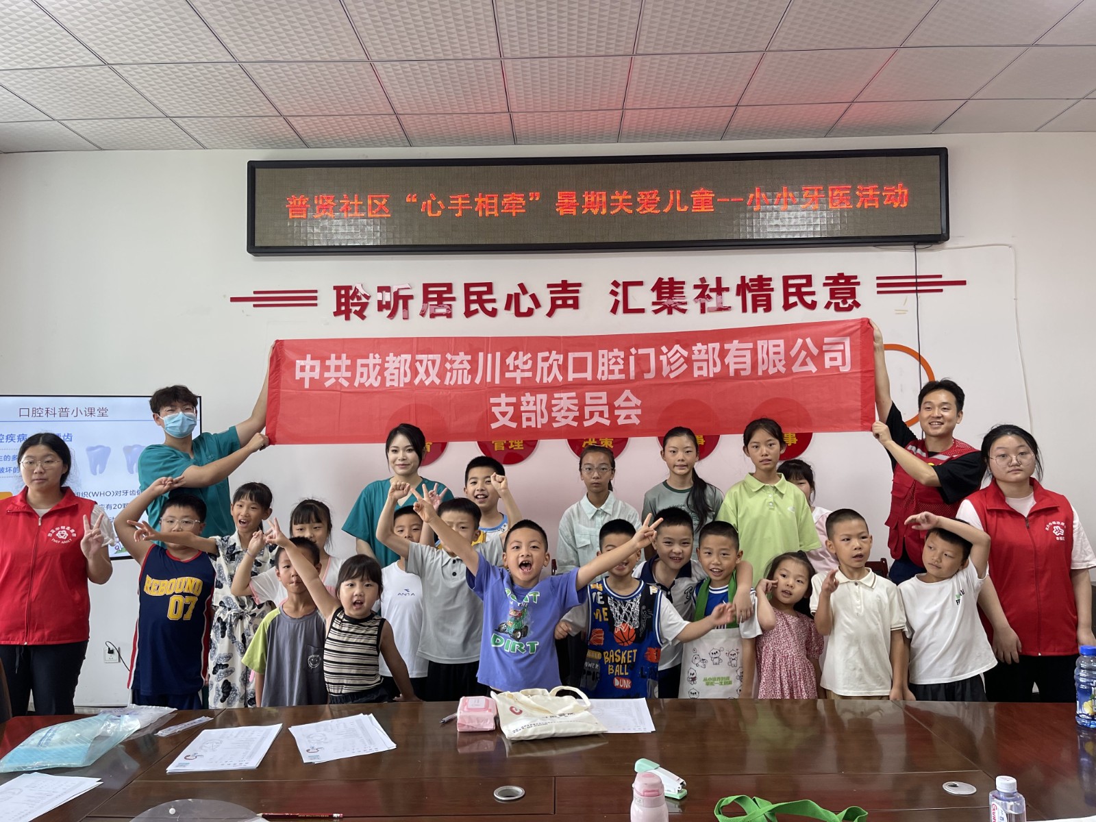 暑期来临,为加强对儿童的关爱,增进亲子关系,同时普遍口腔医院双流门诊部携手普贤社区,邀请28组家庭参加“心手相牵,暑期关爱儿童”小小牙医口腔健康知识科普讲座活动。