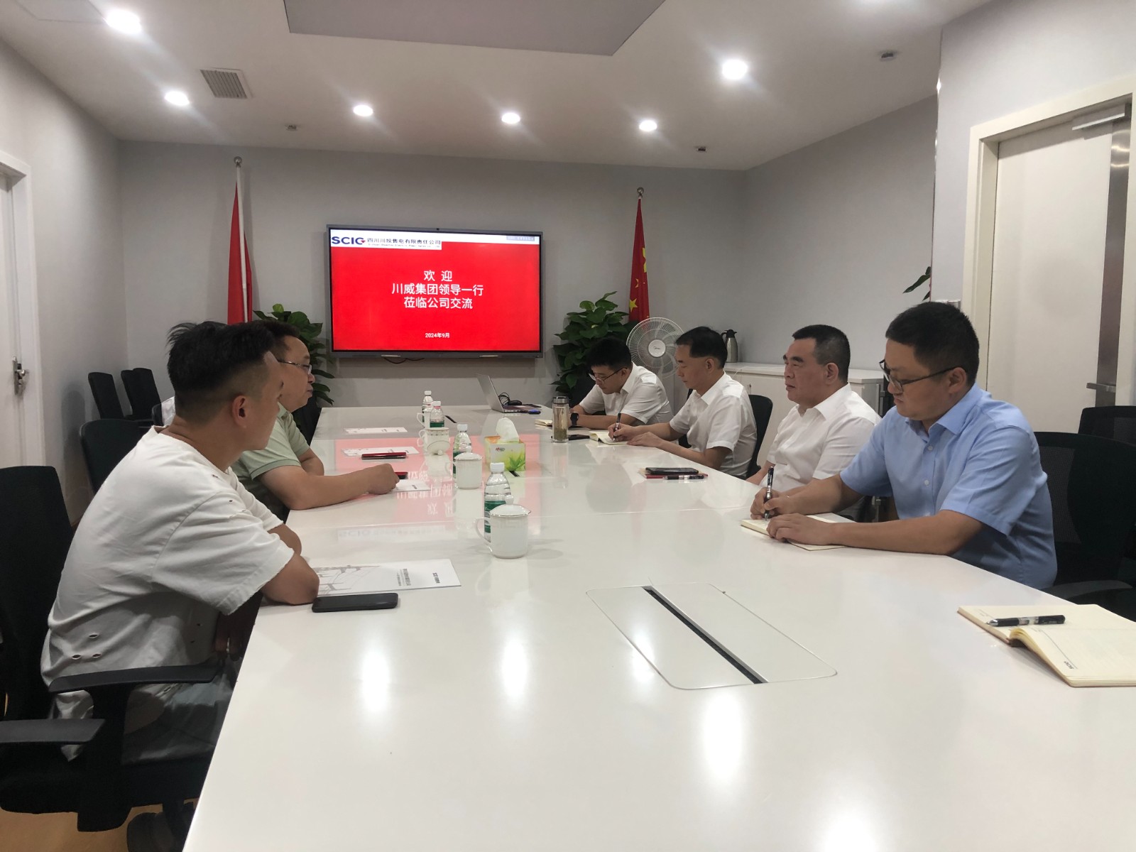 93日,川威集团兴欣碳投公司董事长李金峰一行到访川投售电公司,双方就直购电业务合作,储能行业现状及发展趋势开展工作座谈。川投售电公司董事长、总经理谢伟平主持会议,副总经理李翔参加会议
