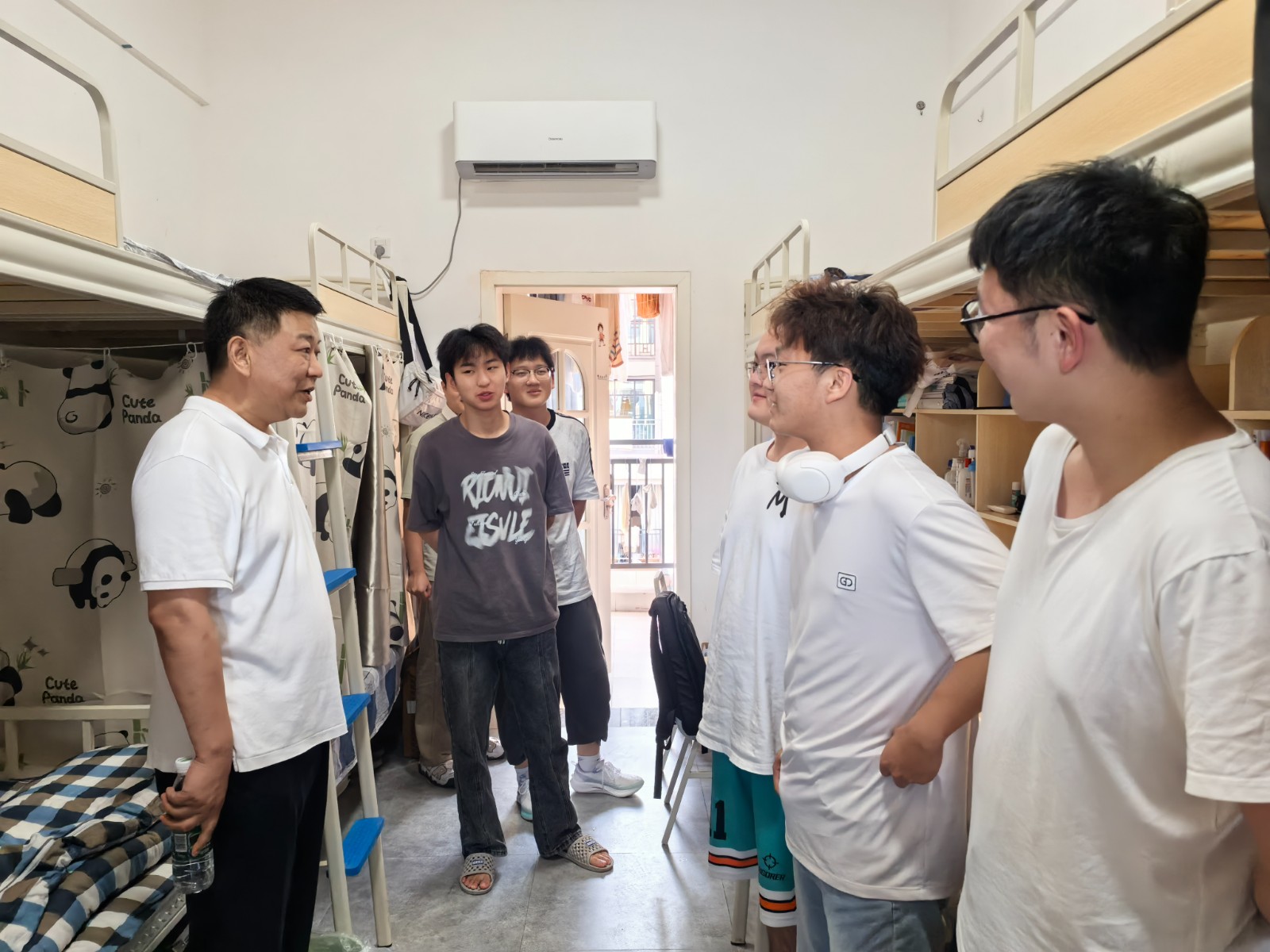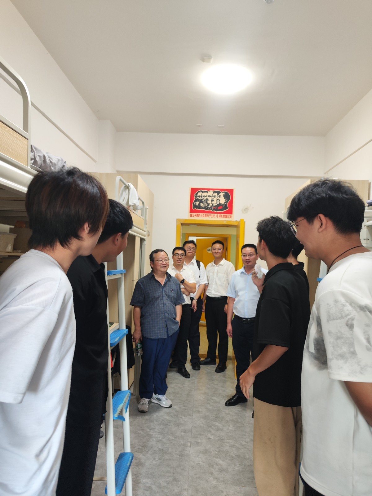 在学生宿舍里,院领导和新生亲切拉家常、聊近况、话学业,认真倾听他们的心声和需求。“你老家是哪里的?”“如果饮食不习惯,可以给辅导员说”“对于大学生活有什么规划……”院领导叮嘱同学们要主动融入集体,建立和谐融洽的人际关系,提高安全防范意识。他们鼓励大家要坚定理想信念,树立学习目标,始终葆有不断追求的激情,勇于探索、敢于挑战,珍惜大学学习机会,努力成长为德智体美劳全面发展的创新应用型人才。