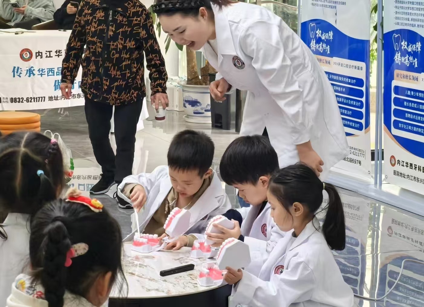讲解结束后,医护人员还为小朋友进行了口腔健康检查,并针对发现的口腔问题向家长提出了针对性治疗建议。活动尾声,内江华西牙科医院还为小朋友们准备了精美的口腔护理小礼品,颁发了“小小牙医荣誉证书”,让小朋友在享受知识盛宴的同时,也能将健康带回家。