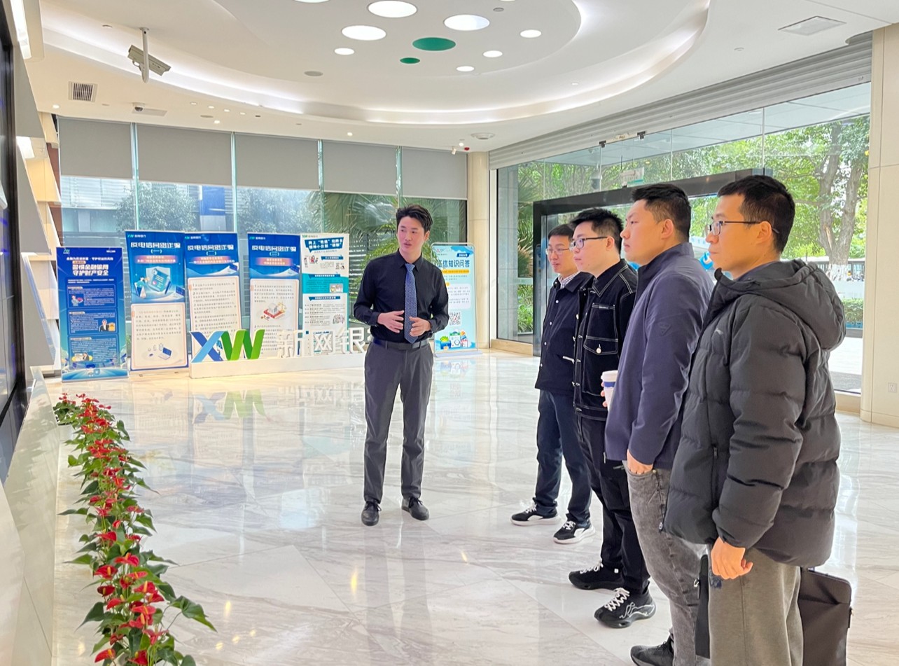 会前,川投云链一行参观了新网银行展示大厅,全面了解新网银行的线上化产品特色和科技创新能力。