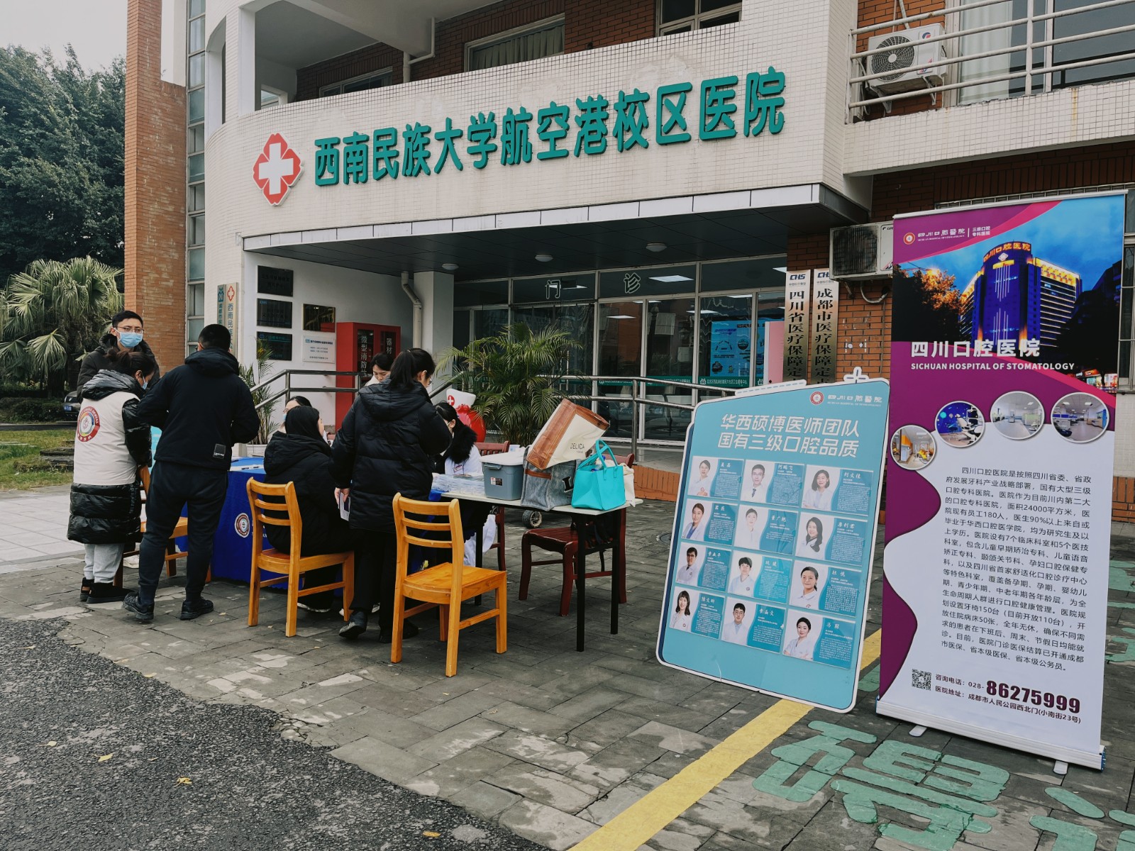 讲座结束后,四川口腔医院专家团队为现场师生提供了口腔检查服务。专家们认真细致地为每一位前来咨询的师生进行了口腔问题的诊断,并提供了个性化的治疗建议。