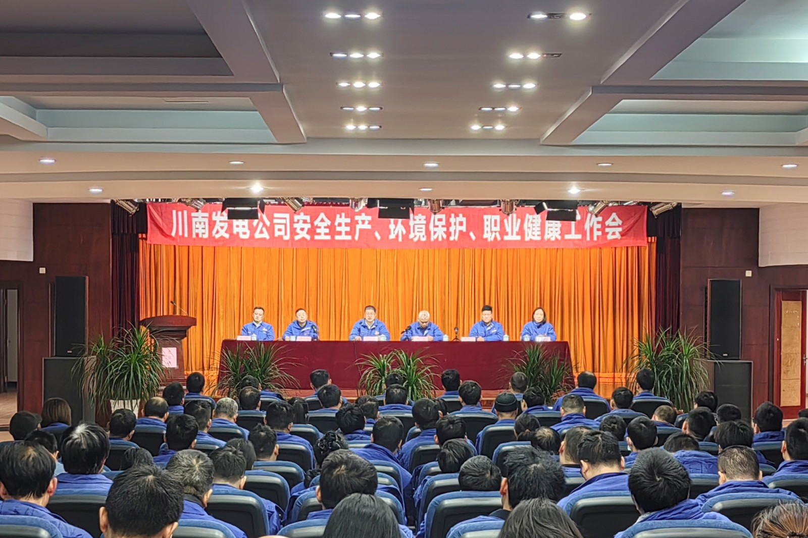 1月17日上午,川南发电公司召开2025年安全生产、环境保护和职业健康工作会,总结2024年工作成绩,布置2025年工作任务。会议由公司党委委员、常务副总经理唐春主持。公司党委书记、董事长刘胜金,党委副书记、总经理陈嵩及其他在家公司领导、各部门及常驻外委维护单位项目部负责人和能离开工作岗位的员工共计200余人参加会议。