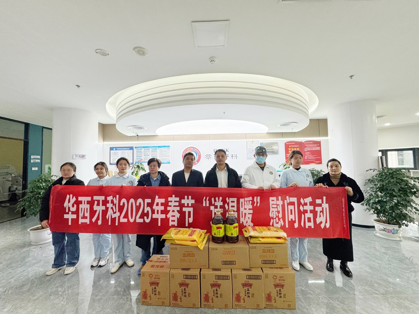 近日,华西牙科党委委员、副总经理刘云戈赴内江华西牙科医院宣讲省委十二届六次全会精神,并开展春节“送温暖”慰问活动,内江华西牙科医院党支部书记、董事长青亮陪同。