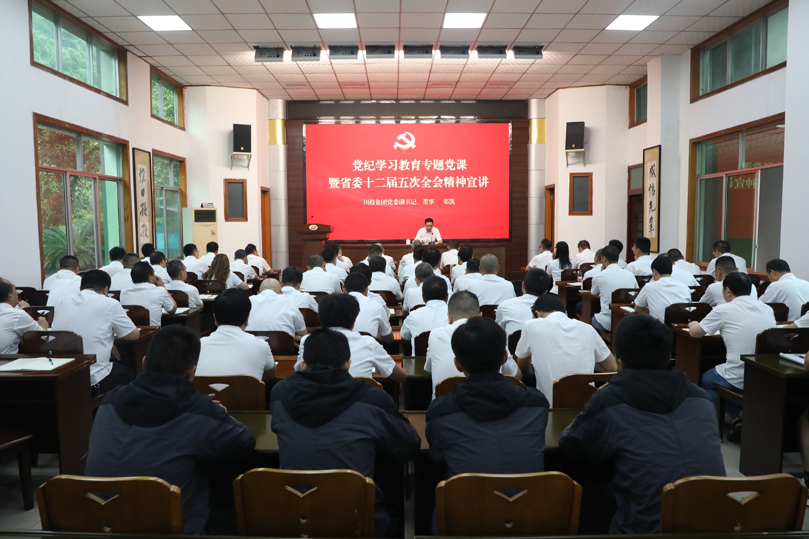 6月27日,川投集团党委副书记、董事邓凯赴嘉阳集团作党纪学习教育专题党课暨省委十二届五次全会精神宣讲,并开展“关爱职工,清凉一夏”慰问活动。