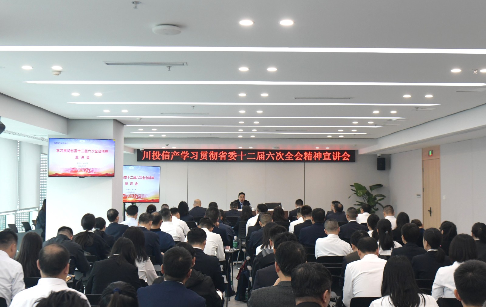 为进一步学习贯彻省委十二届六次全会精神,推动全会精神在川投信产落地落实,10月21日,川投集团副总经理,川投信产党委书记、董事长肖长青赴川投信产开展省委十二届六次全会精神专题宣讲。