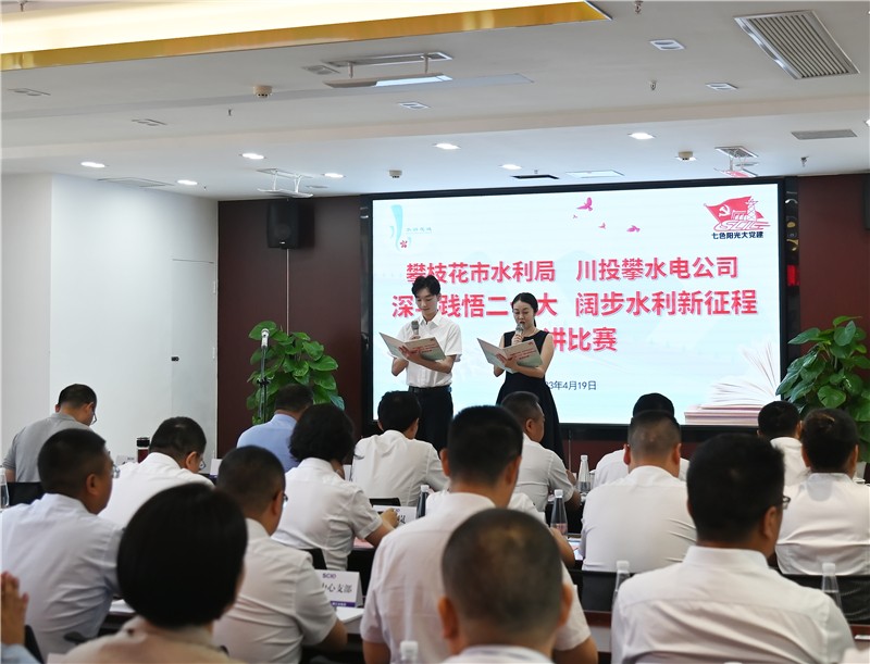 为全面贯彻党的二十大精神,扎实开展学习贯彻习近平新时代中国特色社会主义思想主题教育,在攀水电党总支开展主题教育领导干部读书班期间,为丰富学习形式,营造浓厚学习氛围,近日,攀水电公司与攀枝花市水利局共同举办了“深学践悟二十大、阔步水利新征程”深化“水润花城”党建品牌建设暨政企党组织共建活动,开展征文和演讲比赛。攀枝花市直机关工委常务副书记鲜明,攀枝花市水利局党组成员、副局长林兆东,党组成员、机关党委书记胡嘉,川投能源副总经理、攀水电公司党总支书记、董事长、攀新能源董事长徐孝刚及读书班成员参加此次活动并担任评委。
