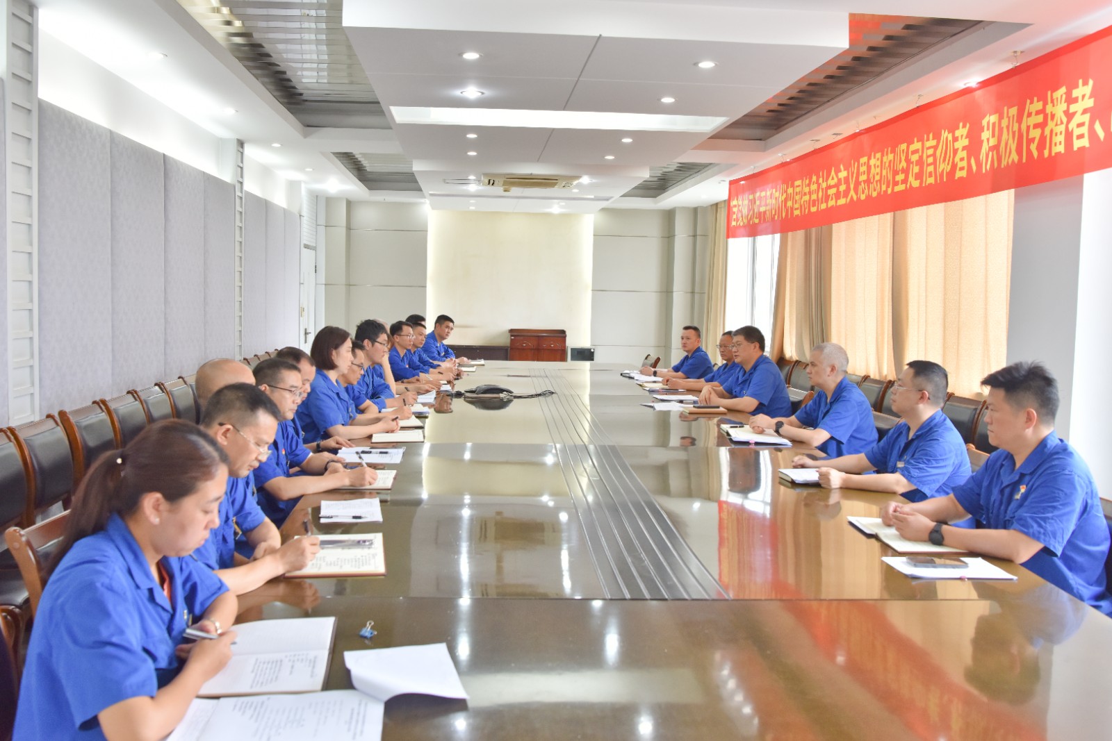 7月26日,川南发电召开学习贯彻习近平新时代中国特色社会主义思想主题教育调研成果交流会。公司党委书记、董事长刘胜金主持会议。公司领导班子成员参加会议并作交流发言。公司各党支部书记、部门负责人列席会议。